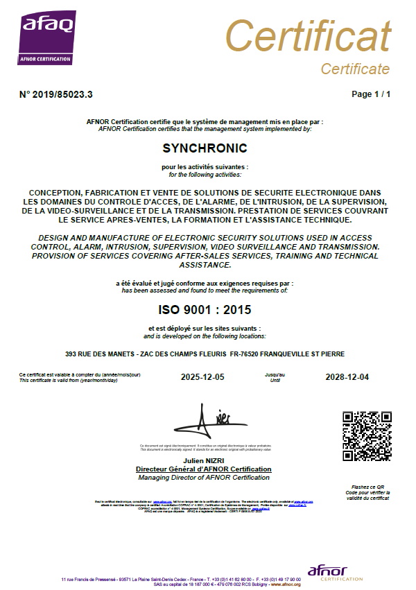 Synchronic renouvelle la certification ISO 9001 : 2015